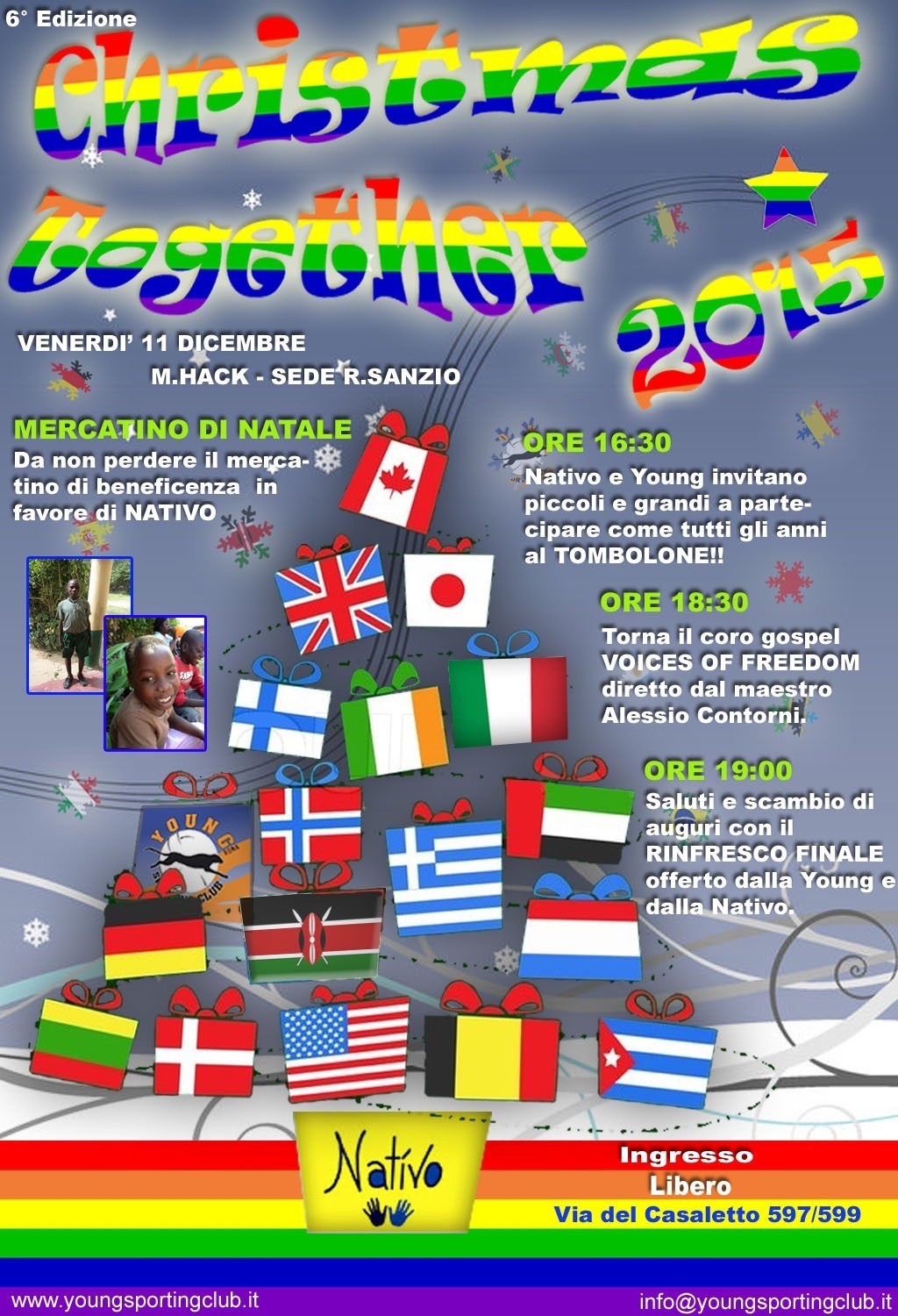 Roma, 11 dicembre 2015 – Tutti invitati alla festa di Natale organizzata da “Associazione Nativo” dalle ore 16:30 presso la scuola “R. Sanzio”.